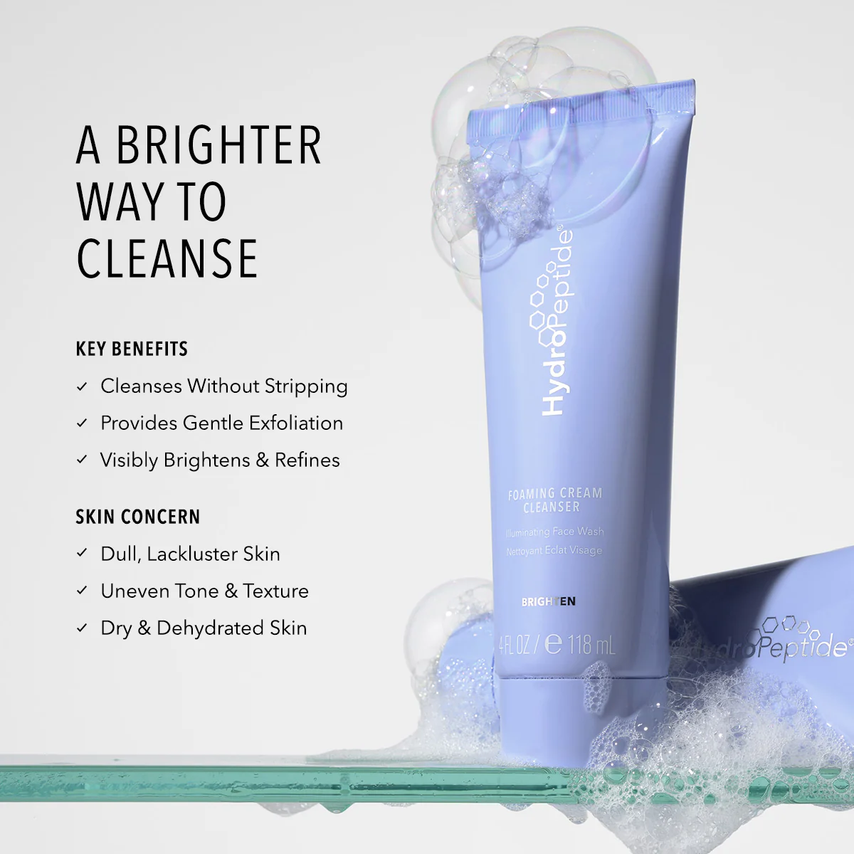 This luxurious cream formula cleanses and gently exfoliates while providing deep nourishment to all skin types. A potent combination of fortifying peptides, rice powder, and advanced illuminating actives visibly brightens and smooths the skin, revealing a healthy, balanced complexion that glows.